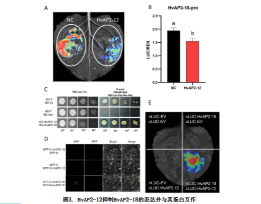 3. HvAP2-12抑制HvAP2-18并与其蛋白互作