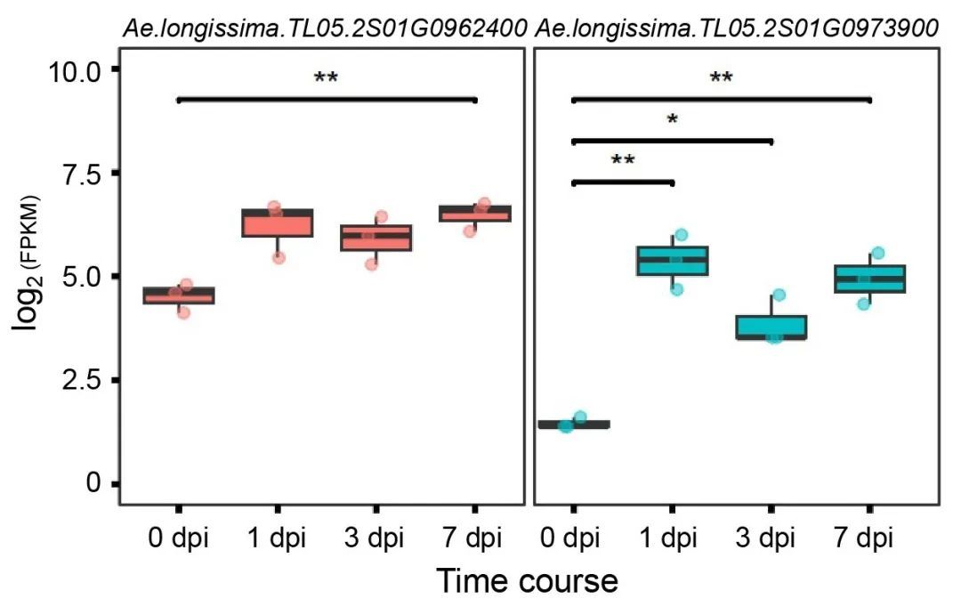 图4两个YrAev候选基因对条锈菌侵染的表达响应